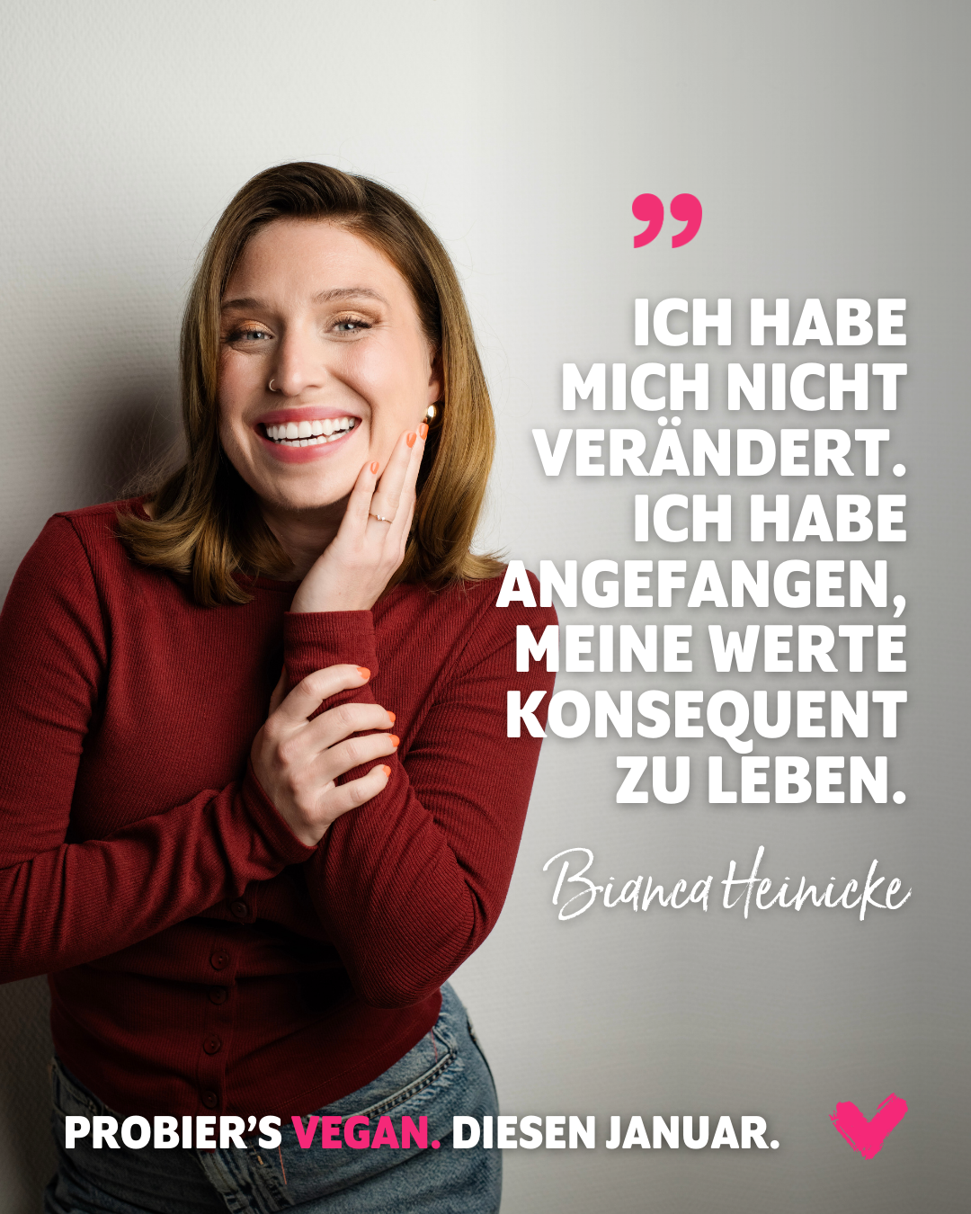 Tipp 4 – Hol dir Motivation: Egal, ob du es für das Klima, die eigene Gesundheit oder wie Bianca Heinicke für die Tiere vegan probierst – die persönlichen Gründe für den Veganuary helfen, motiviert zu bleiben. Und du bist nicht allein: Millionen Menschen probieren es im Januar vegan und eine riesige Community hat jede Menge Tipps und Tricks auf Lager, die sie in den sozialen Medien teilt.