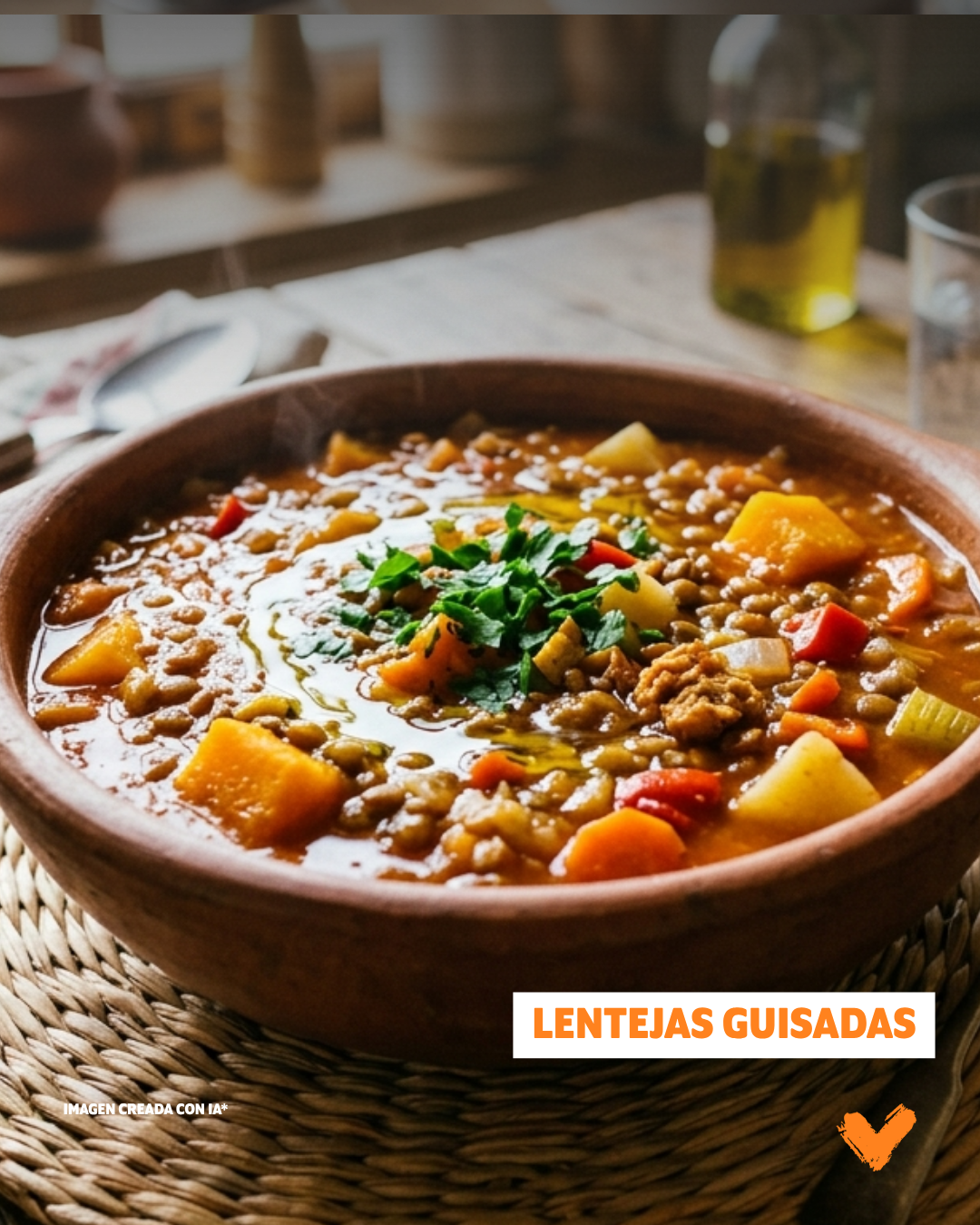 - -Lentejas guisadas: lentejas con verduras y arroz.